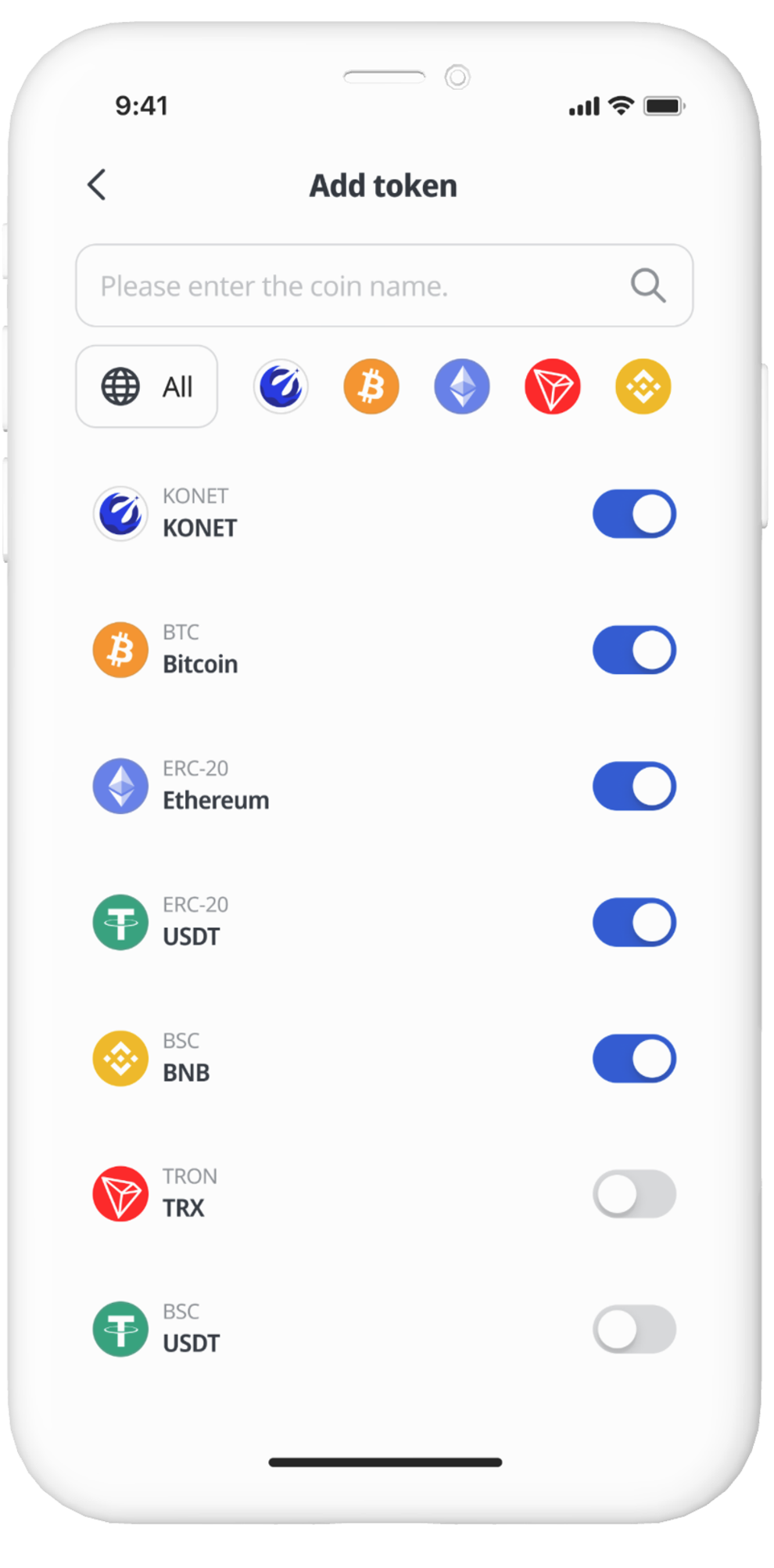 Multi-digital asset supportKONWallet provides digital asset storage services
